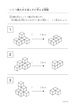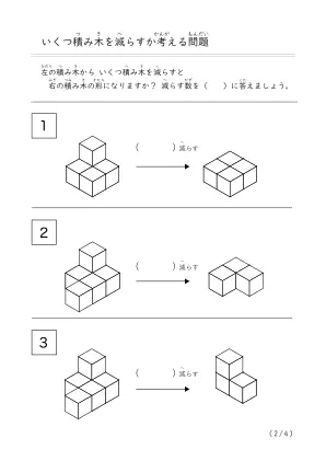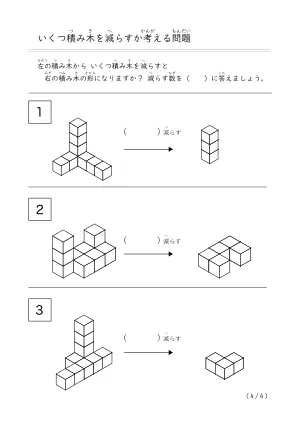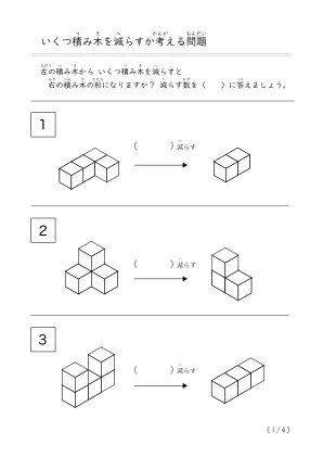 プリント名 | 減らして作る積み木問題A |