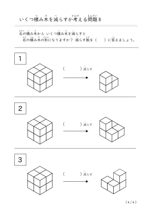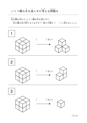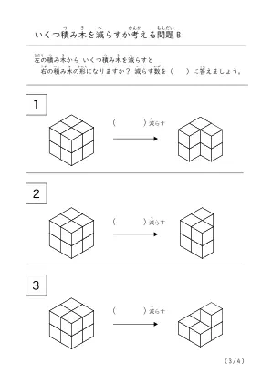 プリント名 | 減らして作る積み木問題B |