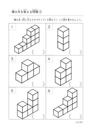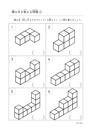 詳しくは「注意事項と免責事項」に記載していますが、 このプリント「積み木を数える問題③」は、「注意事項と免責事項」の範囲内であれば、ご自由に使用することができます。