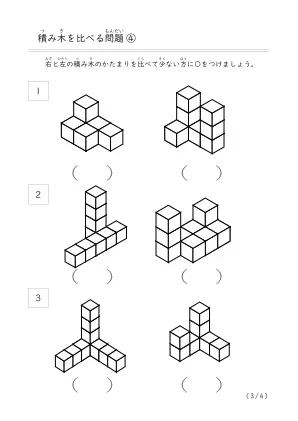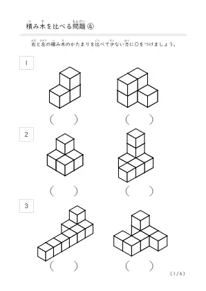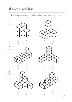 積み木の数を数える「積み木比べ問題④」無料ダウンロード