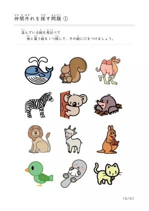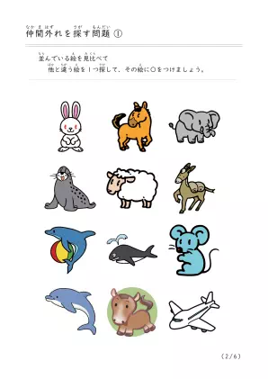 プリント内容 | 他とは違う絵を探す問題 |