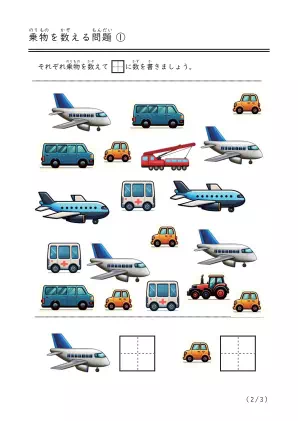 詳しくは「注意事項と免責事項」に記載していますが、 このプリント「乗物を数える問題」は、「注意事項と免責事項」の範囲内であれば、ご自由に使用することができます。