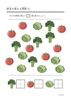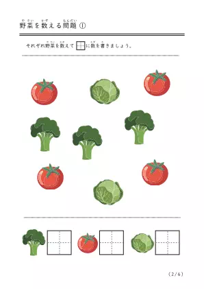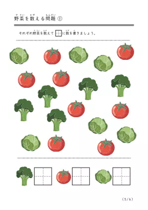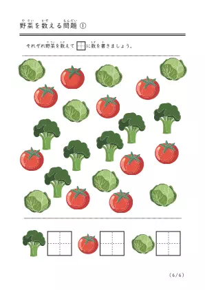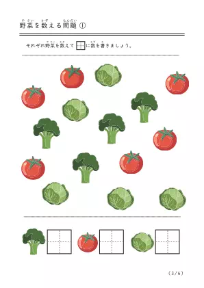 詳しくは「注意事項と免責事項」に記載していますが、 このプリント「野菜を数える問題」は、「注意事項と免責事項」の範囲内であれば、ご自由に使用することができます。