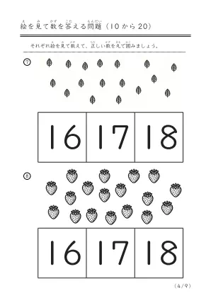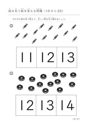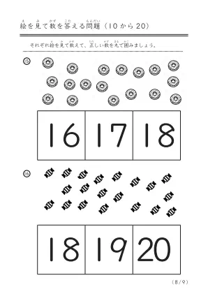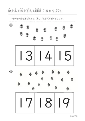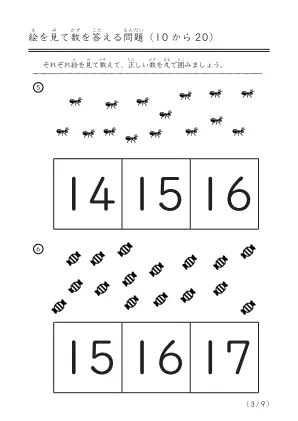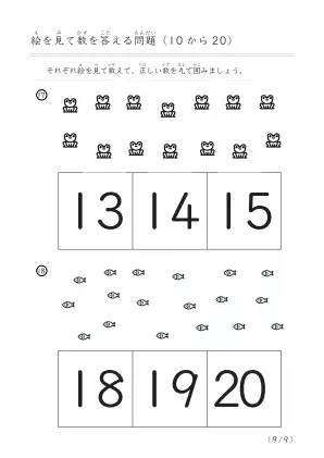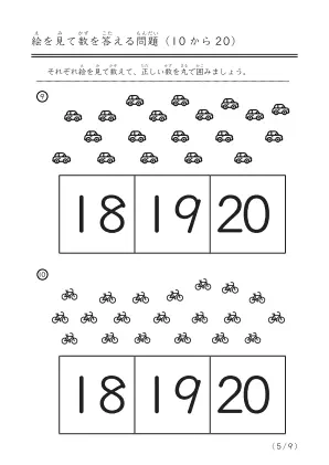 「絵を数えて丸をつけるプリントB」ダウンロード