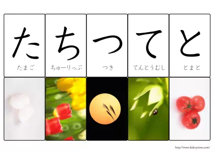 ひらがなの持つイメージにぴったりな写真画像とのセットで1枚のカードになっています。楽しみながら使うのがコツです。