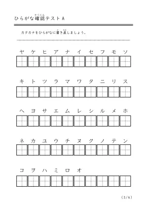 カタカナからひらがなに変える「「ひらがな確認テストA」」無料ダウンロード