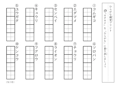 カタカナからひらがなへ「ひらがなに書き直す問題A」無料ダウンロード