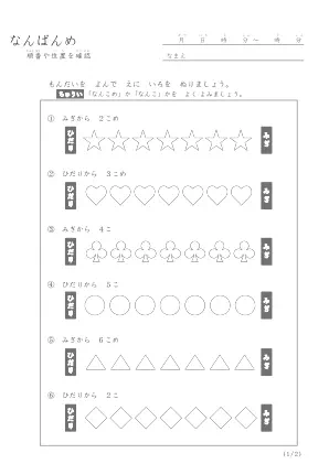 詳しくは「注意事項と免責事項」に記載していますが、 このプリント「なんばんめ問題(A)」は、「注意事項と免責事項」の範囲内であれば、ご自由に使用することができます。