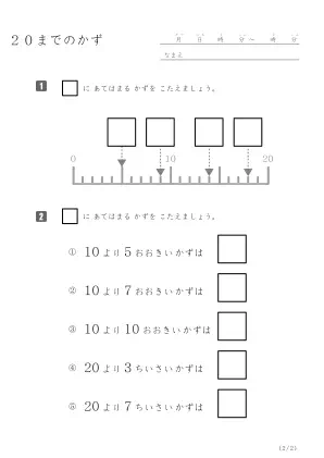 20までの数を答える問題
