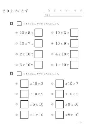 20までの数がでてくる「大きい数の問題(C)」無料ダウンロード