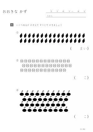 詳しくは「注意事項と免責事項」に記載していますが、 このプリント「大きい数の問題(D)」は、「注意事項と免責事項」の範囲内であれば、ご自由に使用することができます。