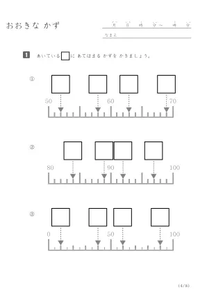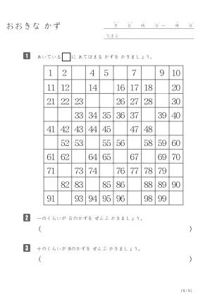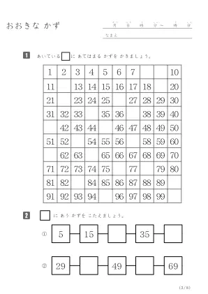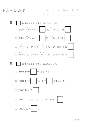 100までの大きな数を学ぶ「大きい数の問題(D)」無料ダウンロード