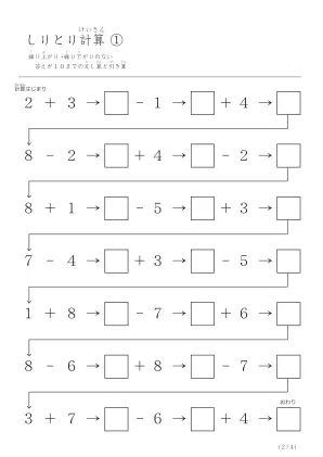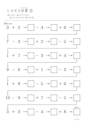 遊び心ある計算問題「しりとり計算プリント」無料ダウンロード