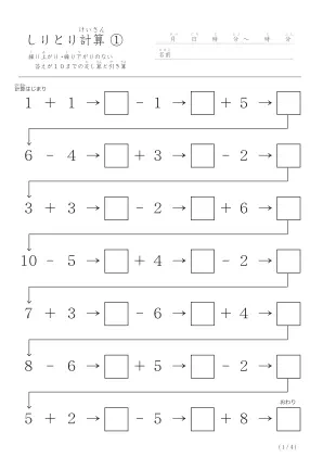 「しりとり計算プリント」ダウンロード