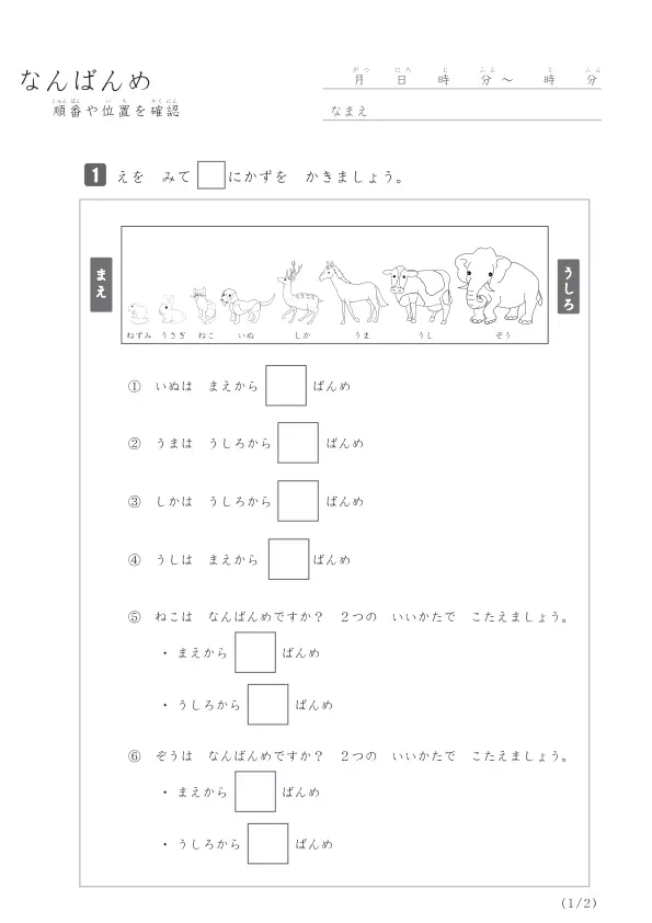 生き物の絵を数えて答える問題( A4(縦):3 )