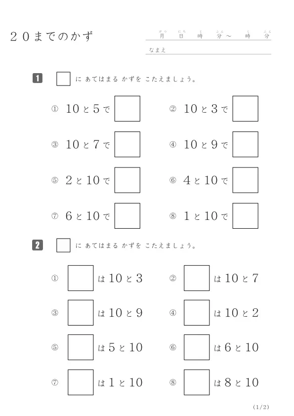 答えが10になる虫食い足し算プリント( A4(縦):10 )ページ