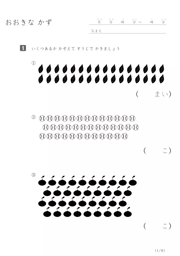 100までの大きな数を答える問題( A4縦:8 )ページ
