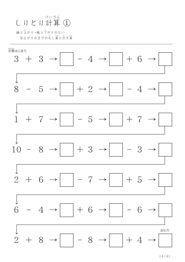 答えが次の問題になるしりとり計算。( A4縦:10 )ページ