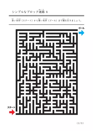 子どもの知育にぴったりなA4サイズのシンプルなブロック迷路です。細めなので鉛筆をしっかりと持てる子向けの迷路です。集中してスタートからゴールまで線を引きましょう。