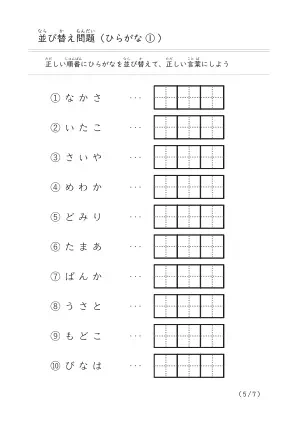 正しい言葉を見つけだそう「並び替え問題(ひらがな)①」無料ダウンロード