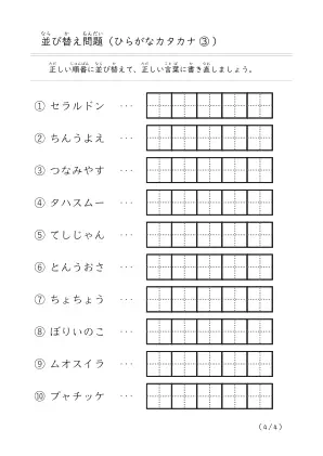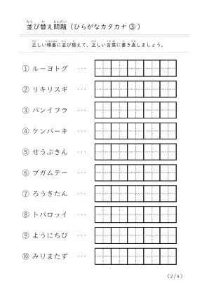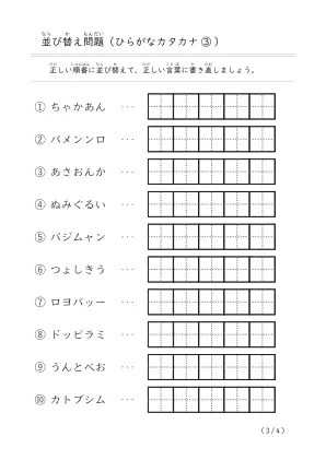 ひらがな・カタカナ言葉がでてくる「並び替え問題(まとめ)③」無料ダウンロード
