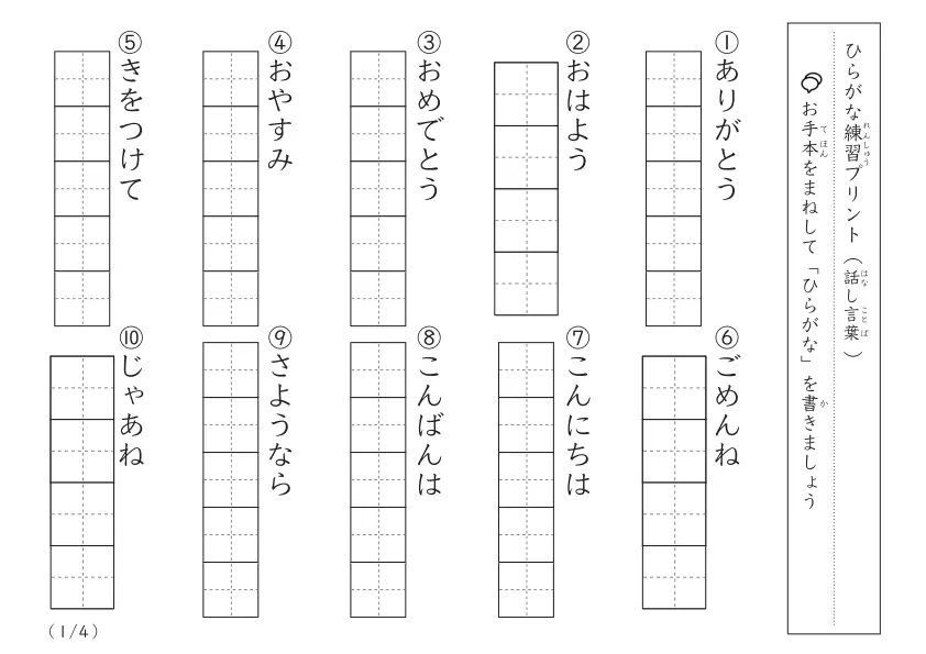 詳しくは「注意事項と免責事項」に記載していますが、 このプリント「ひらがな短文なぞり書き100A」は、「注意事項と免責事項」の範囲内であれば、ご自由に使用することができます。