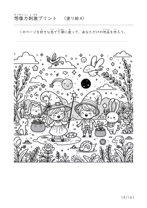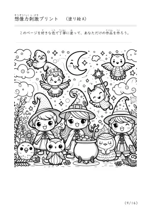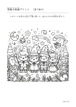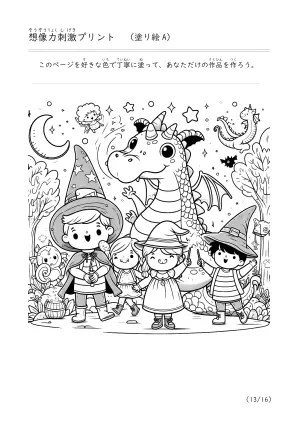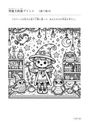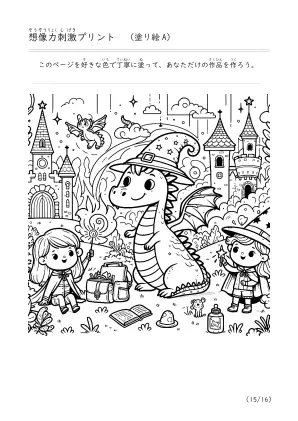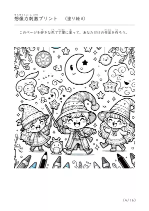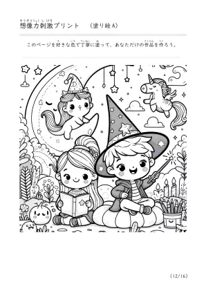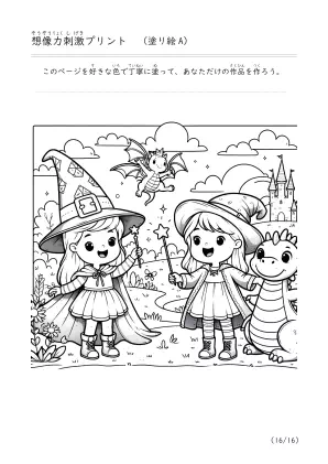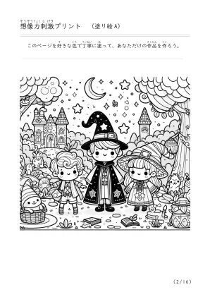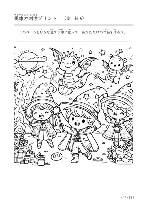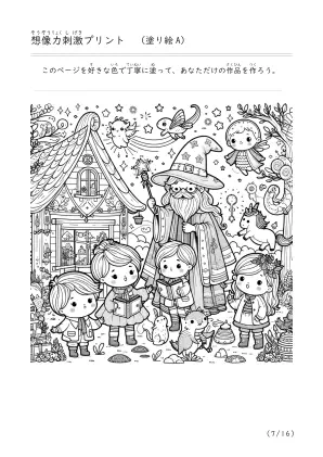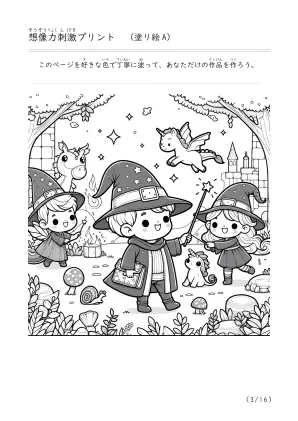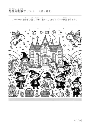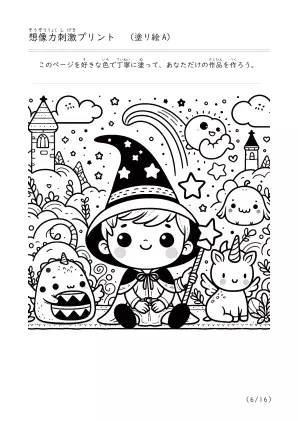 幼児の創造性を刺激する「魔法使いの塗り絵A」無料ダウンロード