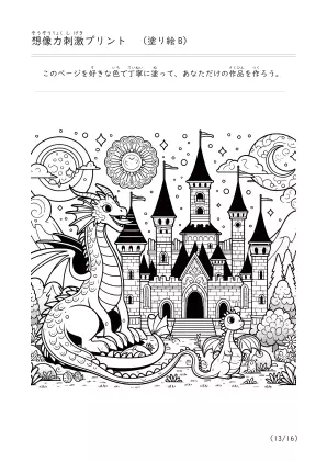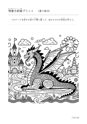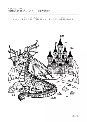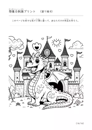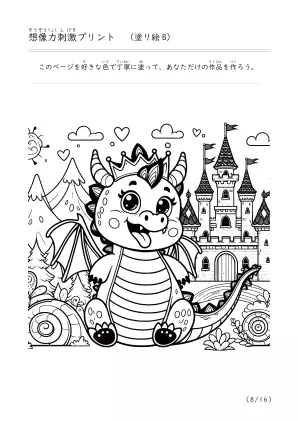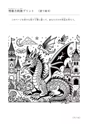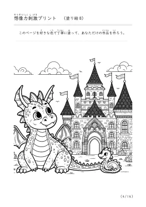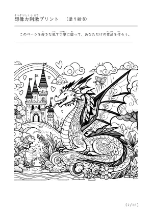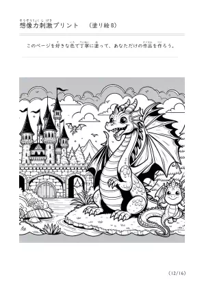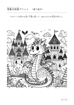 幼児の創造性を刺激する「ドラゴンの塗り絵B」無料ダウンロード
