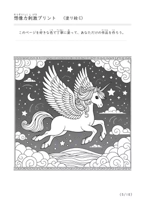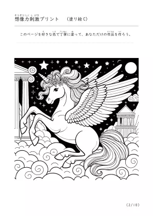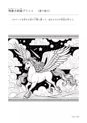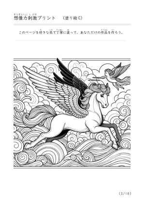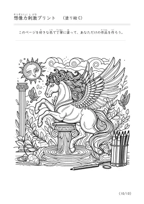 詳しくは「注意事項と免責事項」に記載していますが、 このプリント「ペガサスの塗り絵C」は、「注意事項と免責事項」の範囲内であれば、ご自由に使用することができます。