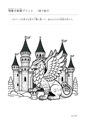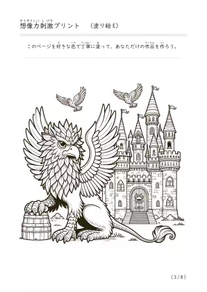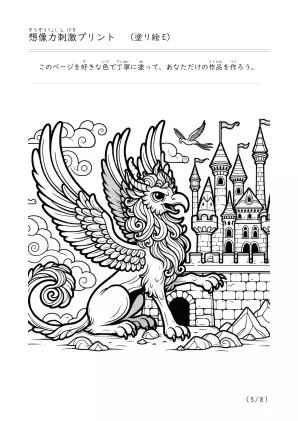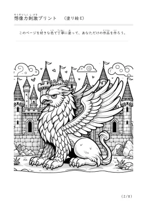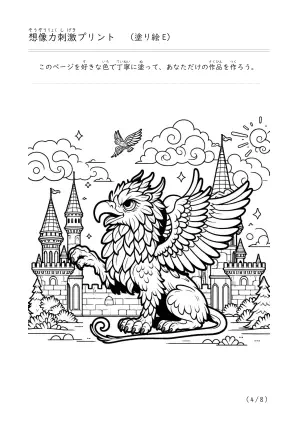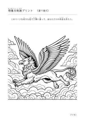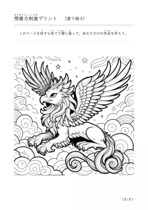 詳しくは「注意事項と免責事項」に記載していますが、 このプリント「グリフォンの塗り絵E」は、「注意事項と免責事項」の範囲内であれば、ご自由に使用することができます。