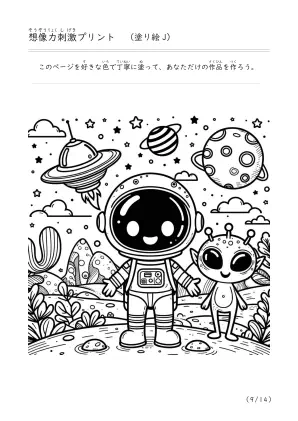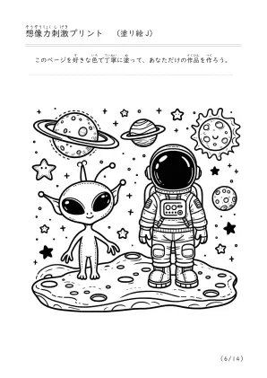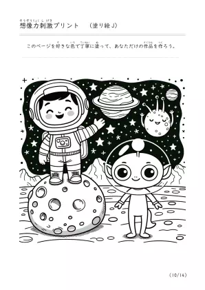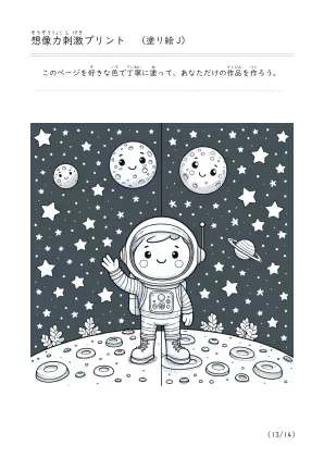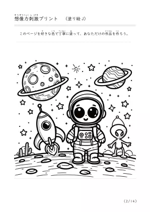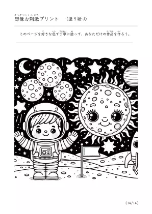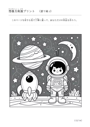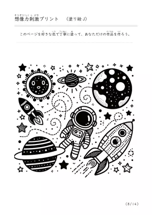 こどもと宇宙をテーマにした塗り絵「宇宙の塗り絵j」無料ダウンロード