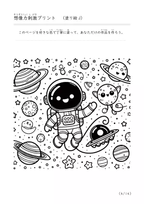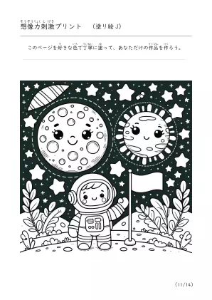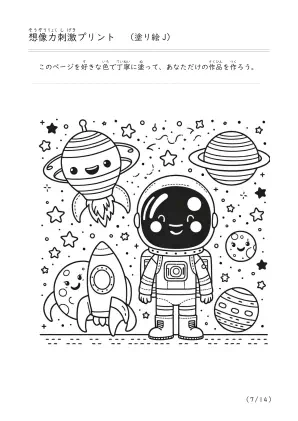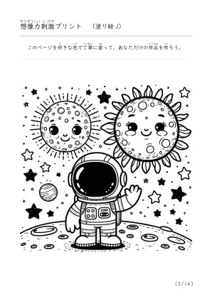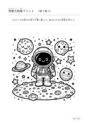 幼児の創造力と探索心を育む楽しい宇宙の塗り絵です。
