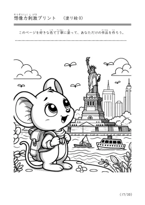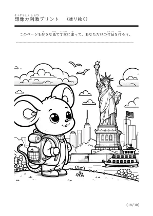 アメリカアメリカの自由の女神像を塗り絵で表現して、自由と夢の国への旅を始めよう。広大な国土に広がる多様な風景と文化を色付けして、冒険心をくすぐろう。