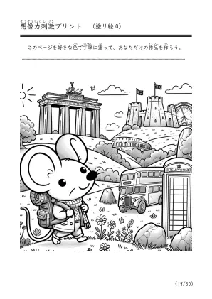 イギリスイギリスのロンドン塔やビッグベンを塗り絵で再現して、王室の歴史と伝統に思いを馳せよう。赤い二階建てバスや電話ボックスを色付けして、英国独特の魅力を感じよう。