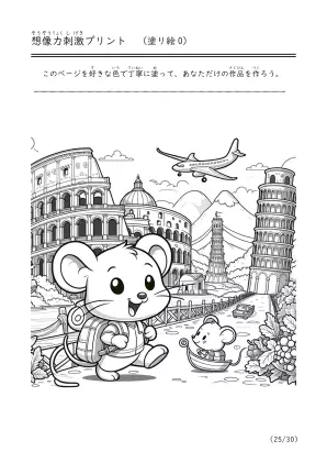 詳しくは「注意事項と免責事項」に記載していますが、 このプリント「世界を旅する塗り絵o」は、「注意事項と免責事項」の範囲内であれば、ご自由に使用することができます。