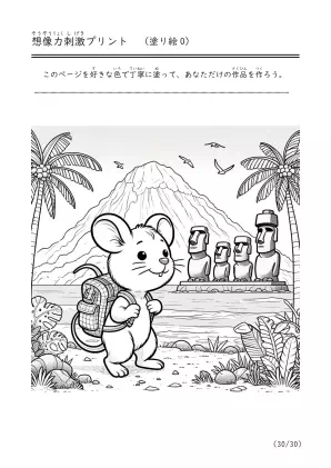 イースター島イースター島のモアイ像を色付けして、遠い太平洋の島の神秘に触れよう。巨大な石像の背後にある歴史と文化を想像しながら、遠く離れた土地の魅力を感じてみよう。