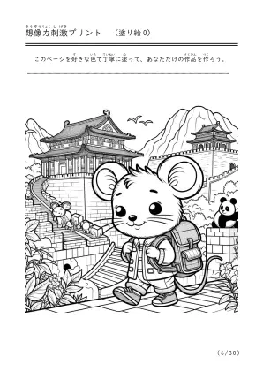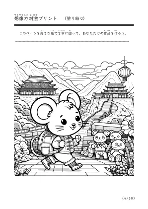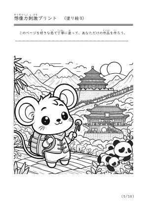 中国中国の壮大な万里の長城を塗り絵で表現して、古代から続く歴史と文化の旅に出よう。華やかな龍や伝統的な衣装を色付けして、多彩な文化を体験しよう。