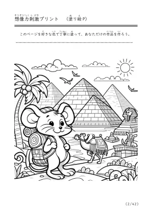 エジプトの壮大なピラミッドを色付けして、古代の謎と冒険に思いを馳せよう。ファラオとスフィンクスが君を待っているよ!