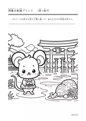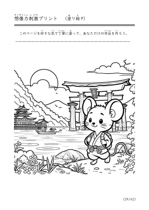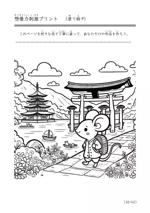 厳島神社:厳島神社の神秘的な鳥居を色付けして、水面に映るその美しい姿に心を奪われよう。潮の満ち引きと共に変わる景色を通じて、自然との調和の美を感じることができます。