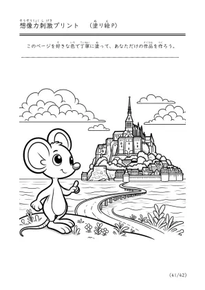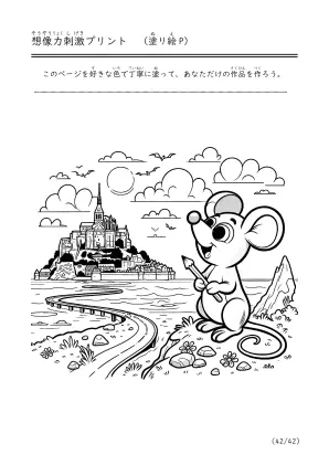 モンサンミッシェルモンサンミッシェルの幻想的な島と修道院を色付けして、潮の満ち引きと歴史の息吹を感じよう。神秘的な旅が君を待っている。
