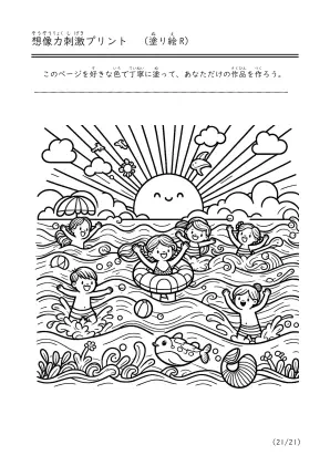 海を楽しむ体験塗り絵