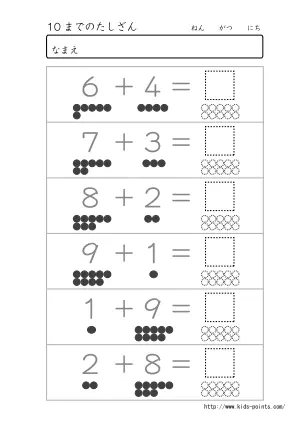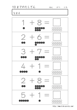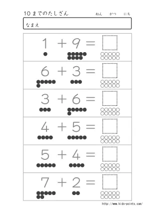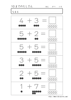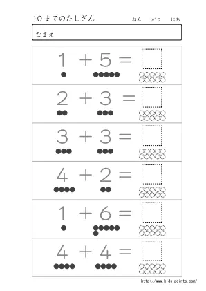 10までの数がでてくる足し算プリント