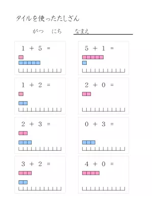 わかりやすい足し算問題「タイルを使う10まで足し算」無料ダウンロード