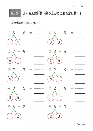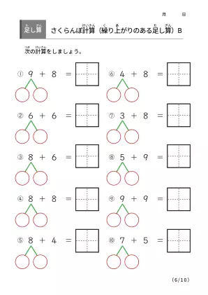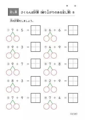 「10のかたまり」を大事にする計算「さくらんぼ計算の足し算B」無料ダウンロード