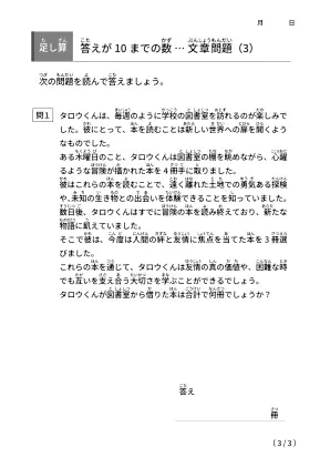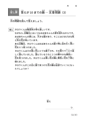 【足し算】答えが10まで「難しめの文章問題」無料ダウンロード