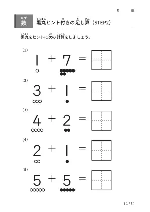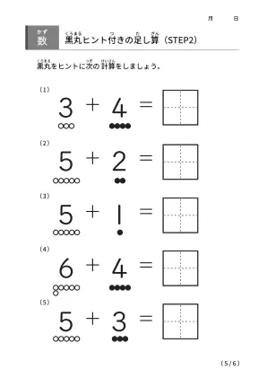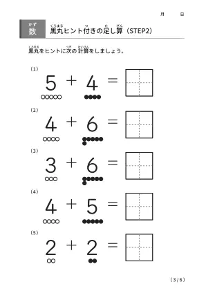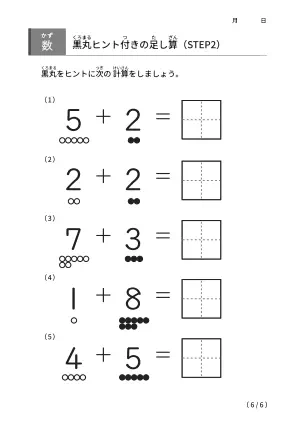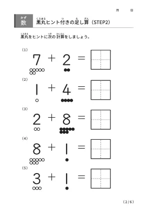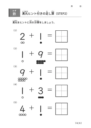 「黒丸ヒント付きの足し算【STEP2】」ダウンロード
