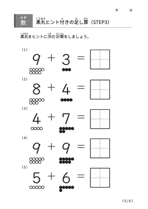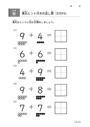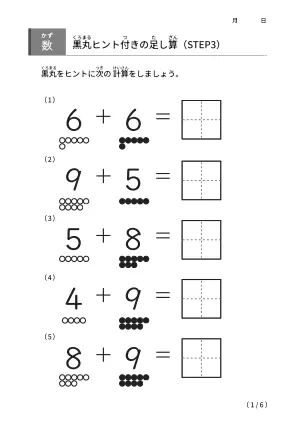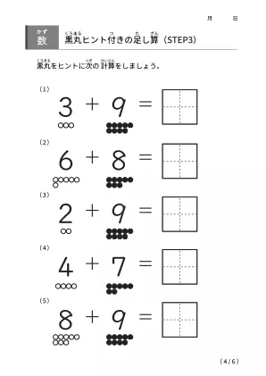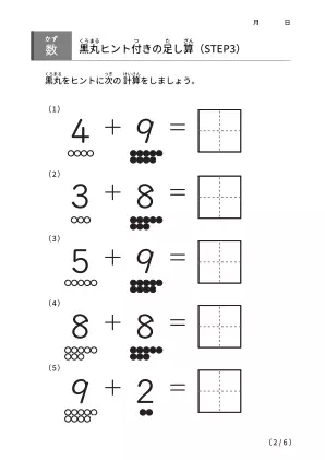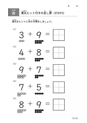 「黒丸ヒント付きの足し算【STEP3】」ダウンロード