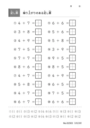 「繰り上がりのある足し算(答え付き)」ダウンロード