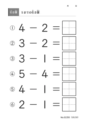 おすすめポイント簡単な5までの引き算から徐々に難易度が上げて引き算をマスターしていきましょう。