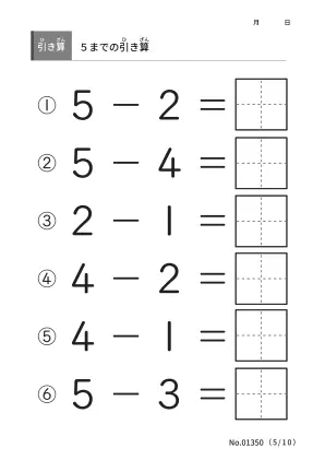 「5までの引き算」基本データ